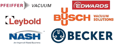 Refacciones para bombas de vacio; Alcatel, Anest Iwata, BGC, Becker, Busch, DVP, Dresser, Ebara, Edwards, Fisher Scientific, Galileo, Kashiyama, Kinner, Leybold, Nash, Orion, PVR, Pfeiffer, Precision Scientific, Rietschle, Stokes Vacuum, Ulvac, Vacuubrand, Varian y Welch.